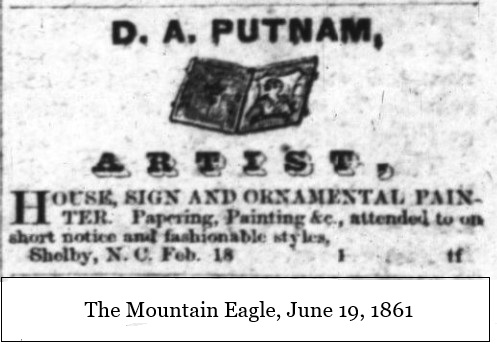 Little is known about the county’s artists during the 19th century. There were some, as the ads below show, but the artistic talent of one man was recorded in two articles for The Heritage of Cleveland County. Johnnie Morehead Queen wrote an article about the old Sharon School, writing,