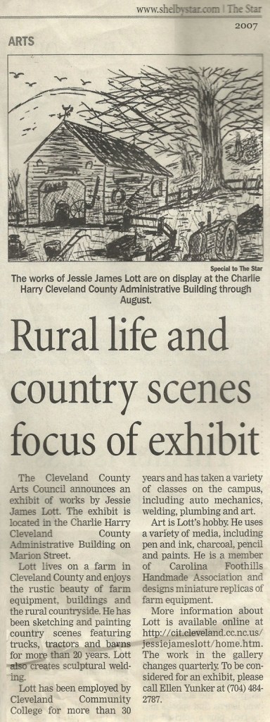 Jesse James Lott is a folk artist from Shelby. Also employed by Cleveland Community College, he is known for his generous gifts of art to people he meets.
