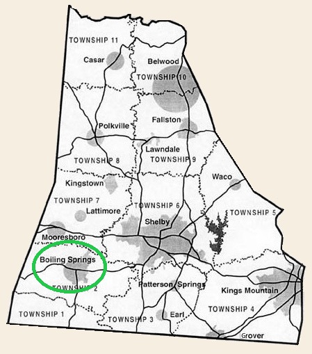 Boiling Springs was named for the five-feet-wide bubbling water that emerged from an underground spring found there. Bubbling as much as six to eight inches high, the spring had been used by Catawba and Cherokee Indians in the 18th century.