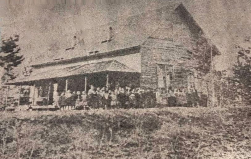 “The students ranged in age from 7 to 21 and were taught by one teacher whose salary varied from $30 a month in 1889 to $375 in 1896. In a spidery script, one teacher recorded that in December 1888, average daily attendance was 39 3-5.* The books they studied, precious, because they were too hard to come by, were Swinton’s and Webster’s Spellers, Sanford’s arithmetic, Reed’s and Kellogg’s Grammar, Maury’s Geography, Moore’s History, Holmes’ Reader, Lockwood’s rhetoric, and Steele’s Sciences. Teachers listed in the book included C. F. Hopper in 1888, V. G. Rollins in 1889 and 1890, and Robert L. Howell from 1891 to 1893. But the most well remembered one is not listed. He was R. (Robert) J. Balfour, a Harvard man, who probably taught in the late 1870s. A Scottish-Irish man who taught with a Yankee accent, Balfour instituted quite a few modern ideas in education at the school. One of them was a rigid program of physical education. He rigged up chinning poles, a high one, and a low one for the boys in his class and had them doing gymnastics during recess. Some parents in the community objected to strenuous exercise, but Balfour stood his ground. He also introduced the sport of boxing to the community and trained several boys. The man knew his students and they knew him so well, he rarely had to use strict disciplinary measures. Balfour was a talented artist, and when he drew a picture of a baptizing, performed by Tom Dixon, every figure was recognizable. Pupils were divided by grades within the confines of the big room. They sat on slab benches and four desks, for writing, stood in the front of the room.“