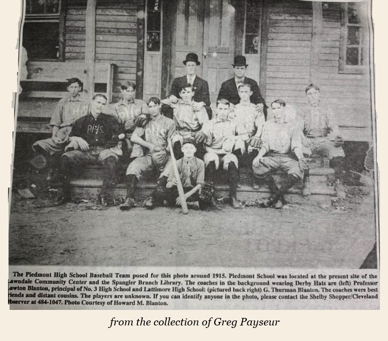 Extinct Schools: Flat Rock, Richards, Royster, Spangler, Sugar Hill (x-1913+), Beam’s Mill School, Burns/Fallston, Double Shoals (1906-x), Douglas/Douglas High (1902-1967), Piedmont Academy (1897-x); Piedmont High (See extensive coverage of Piedmont High School here.)