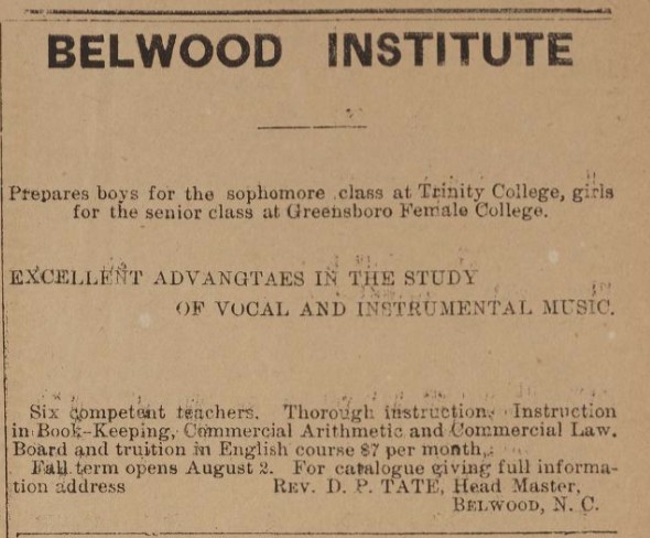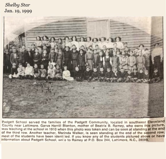 * The Cleveland County Historical Association, “The Early Schools,” in The Heritage of Cleveland County, Vol. I. (Winston-Salem, NC: Hunter Publishing Company, 1982), pg. 3.