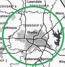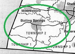 The location of some of the rural schools are shown on a 1918 soil survey map. Because this historic map included the boundaries of the county’s 11 townships, the section below maintains that organization for geographic consistency. For current schools addresses and info, visit the Cleveland County Schools website.