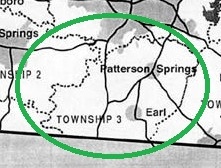 Extinct Schools: Broad River Academy (1876-1913+), Camp (1942-1968), Cedar Grove, Broad River Elem., McBrayer, Patterson Springs High (x), Pruette School (x-1913+), Earl, 1st (1850-x), 2nd and 3rd, (x-x); 4th (1903-1923); 5th (1923-, Township Three High (1931-1967)