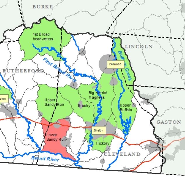 Almost the entire area of Cleveland County lies in the Broad River Basin, with the possible exception of a few areas lying on the eastern boundary of the county.