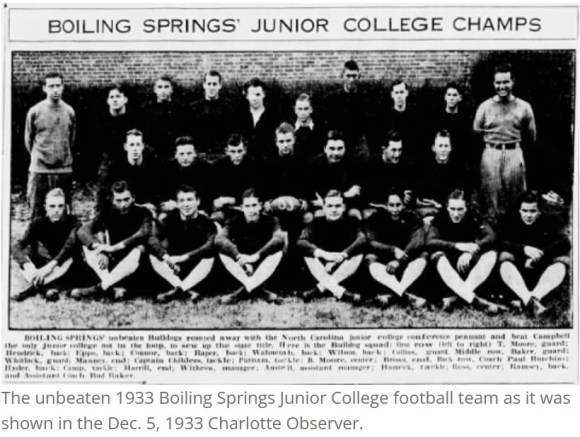 | Boiling Springs Junior College, football history, by Richard Walker. |
