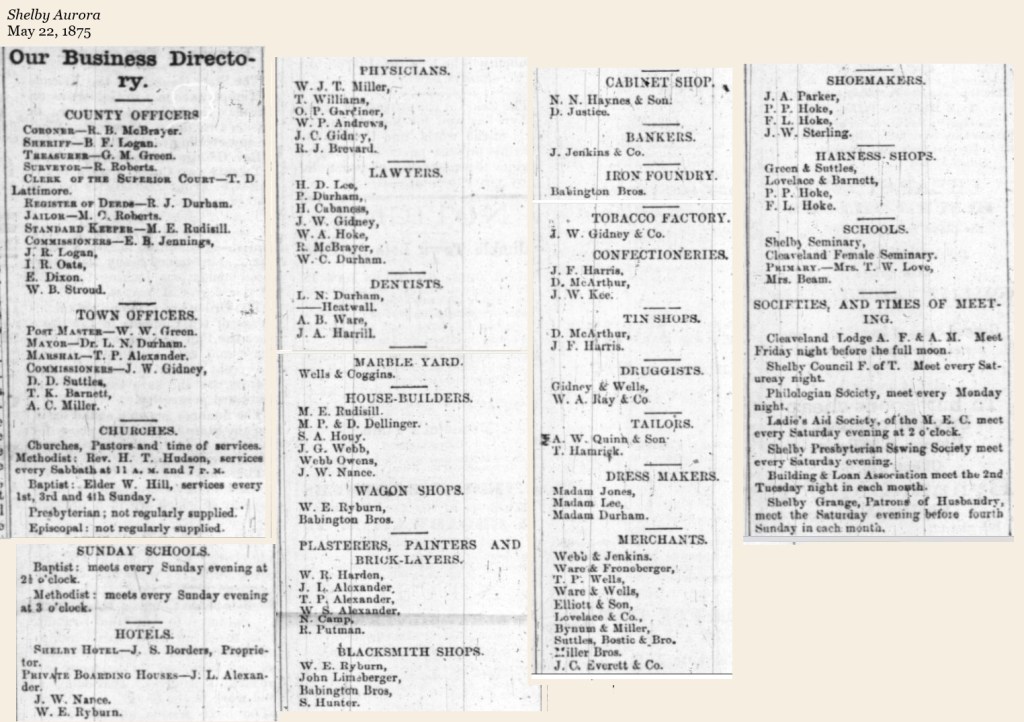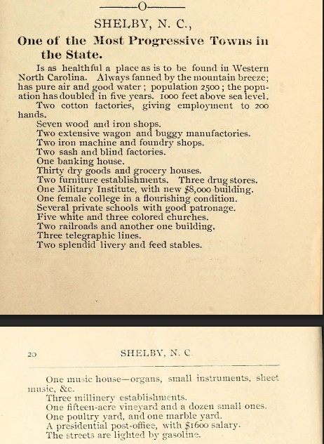 Advertisements offer a snapshot in time of businesses and services operating in Cleveland County over the past almost 200 years. The ads below were found in local newspapers, brochures and pamphlets promoting the area, and in the back of school yearbooks.