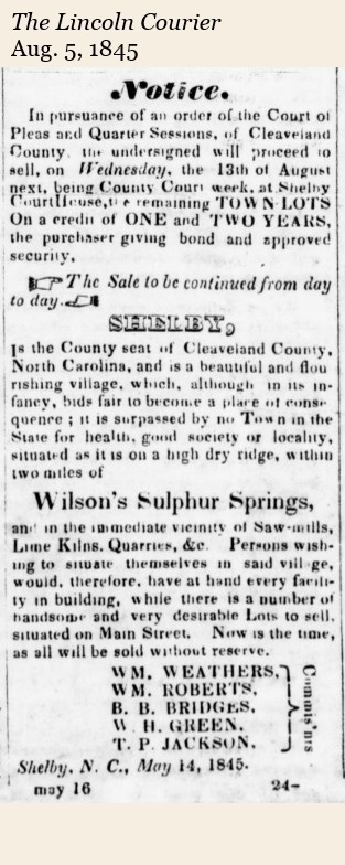 - 1874: Jesse Jenkins and H. D. Lee established J. Jenkins and Company, Shelby’s first bank, on Lafayette Street. Burwell Blanton joined as a partner shortly after.