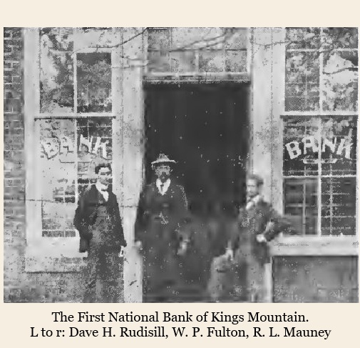 According to the late Bonnie Summers, Kings Mountain historian, the first charter to be issued to a bank in Cleveland County was to First National Bank of Kings Mountain in 1900. It was organized primarily through the interests of the Mauney family. Its first president was William A. Mauney.