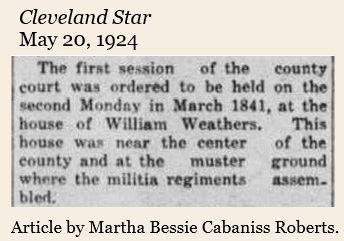 The first county court session was held March 8, 1841 on the second floor of the home of William Weathers in the Zion Church community.