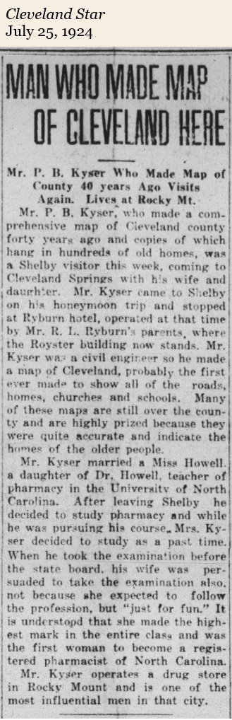 In 1886 topographical engineer, Paul B. Kyser, made a map of landowners in Cleveland County. This link to the Library of Congress copy is high resolution, enabling zoom in without losing resolution.