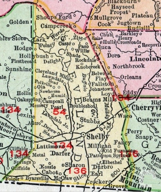 Cleveland County Towns, 1841-1970. This is an interactive map showing towns and communities through 13 decades.