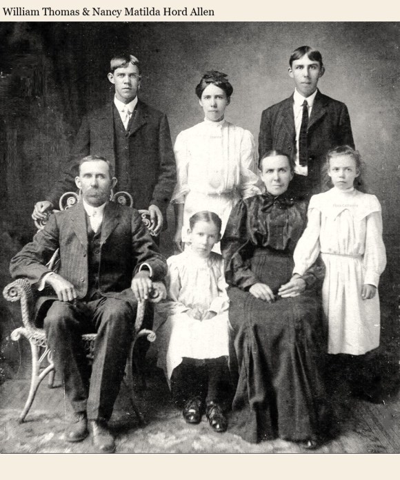 seated l to r: Wm. Thomas, Lily, Nancy Matilda; standing l to r: Theron, Joanna, Harry, and Flora holding her mother’s hand.
