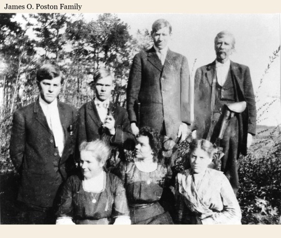 Grady, Raleigh, Garnett, James O. Poston. Ora. Sarah, and Lois Poston.