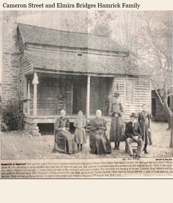 Street Hamrick family in front of the James Irvin log cabin built in 1785.