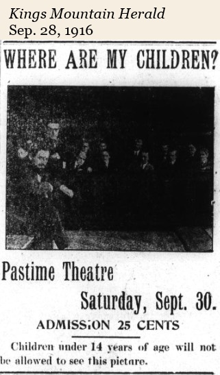 The Pastime Theatre opened in Kings Mountain about 1913 as well. It was mentioned in the Herald as early as January of 1914.