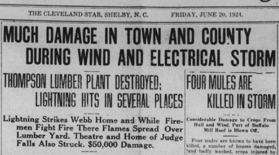 A severe electrical storm causes numerous fires in Shelby and other areas of the county.