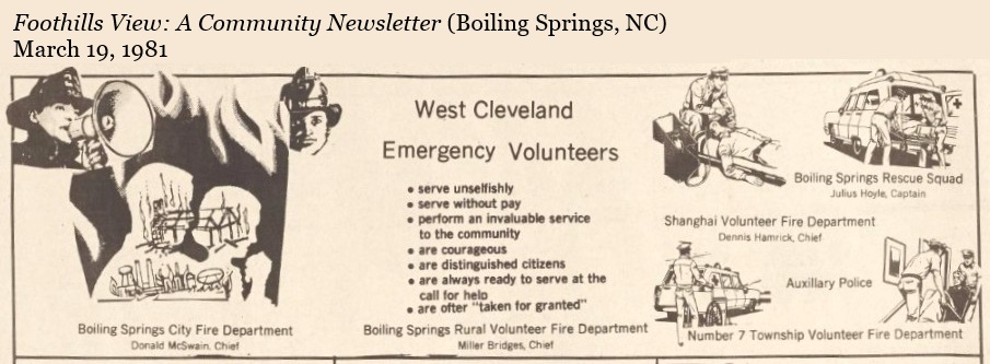 The timeline below includes large fires and notable events that took place in the history of Cleveland County with regard to fire and rescue.