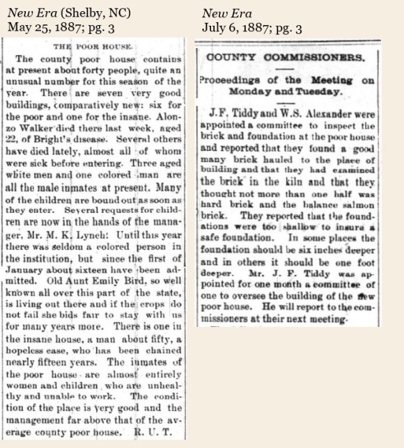 When Cleveland County was formed in 1841, one of the first orders of business was to appoint “Wardens of the Poor.” By May of 1842, seven men serving in this capacity presented to the court their recommendation with regard to the acquisition of land for a “poor house:”
