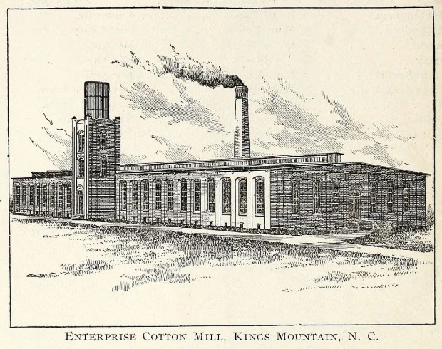 In 1882, the first steam-powered grist and saw mills began operating. Built by William Oates Ware, it was the town’s first major industry. In 1888, the Mauney brothers and Capt. Freno Dilling started the town’s first cotton mill–Kings Mountain Manufacturing Company.