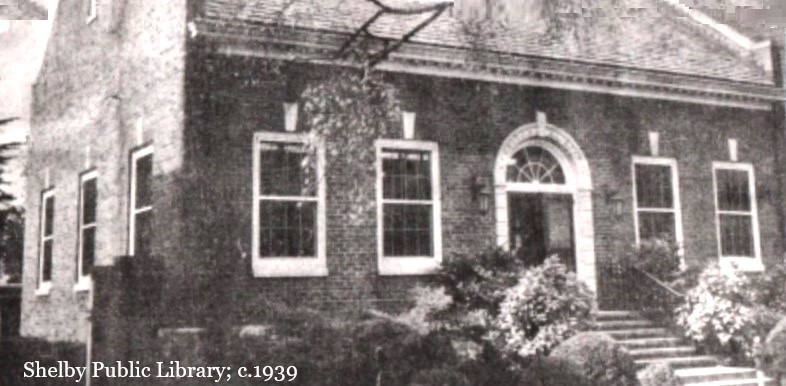 Shelby Public Library. The library in Shelby began in 1911 when six friends–Mrs. Madge Webb Riley, sisters Oeland, Cora, and Fan Barnett, Anne Miller, and Mamie Jones–founded Cleveland County’s first lending library in a single, unheated room behind the law offices of R.L. Ryburn, Esq., adjacent to the County Court Square. They began with “two tables, two bookcases, six split-bottom chairs, and 50 books,” and were open two afternoons a week, organized and staffed on a completely volunteer basis. More history is here.