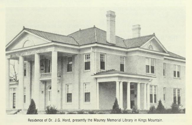 Mauney Library. Originally the personal home of Dr. J. G. Hord, this library was named for Jacob and Margaret Rudisill Mauney and is located at 100 S. Piedmont Ave. in Kings Mountain, NC. More history here.