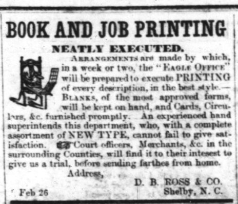 In the early years of Cleveland County, there were no large industries. There were flour and corn grist mills, tanneries, saddle and harness shops, iron works, wagon and buggy factories and such. There was at least one atypical manufacturing plant–a paper mill located on Buffalo Creek between Shelby and Waco. David Froneberger started this mill using old rags to make the paper.
