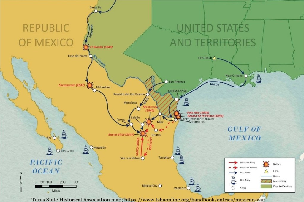 The Mexican-American War was fought between April 1846 and February 1848. The conflict stemmed from the United States’ annexation of Texas in 1845 and from a dispute over whether Texas ended at the Nueces River (Mexican claim) or the Rio Grande (U.S. claim).