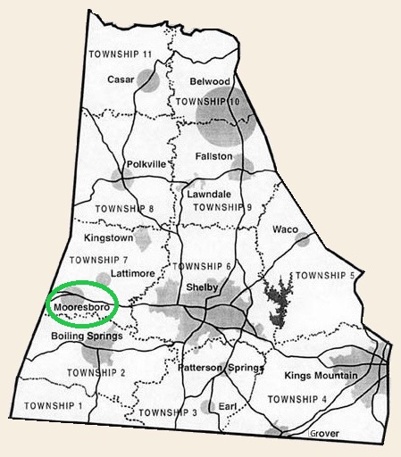According to Mooresboro historian, Virginia Greene DePriest, the area that is now Mooresboro had its beginnings as a settlement as early as the 1750s. Sandy Run Baptist Church was established in 1771. In 1878, Frank Bland came to the area from Surry County with the intention of establishing a town there. Frank Bland was Joseph Frank Bland, a native of Rutherford County, NC. He had married Cleveland County born Martha Burrus in 1875. Frank was already familiar with the area, but was probably motivated by the start of train service through there. Mooresboro was incorporated as a town in 1885. The name chosen was in memory of Lemuel Moore, an early settler.