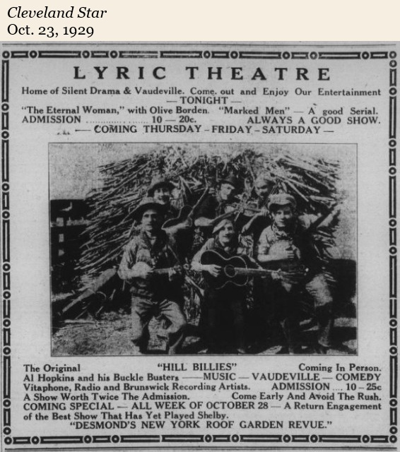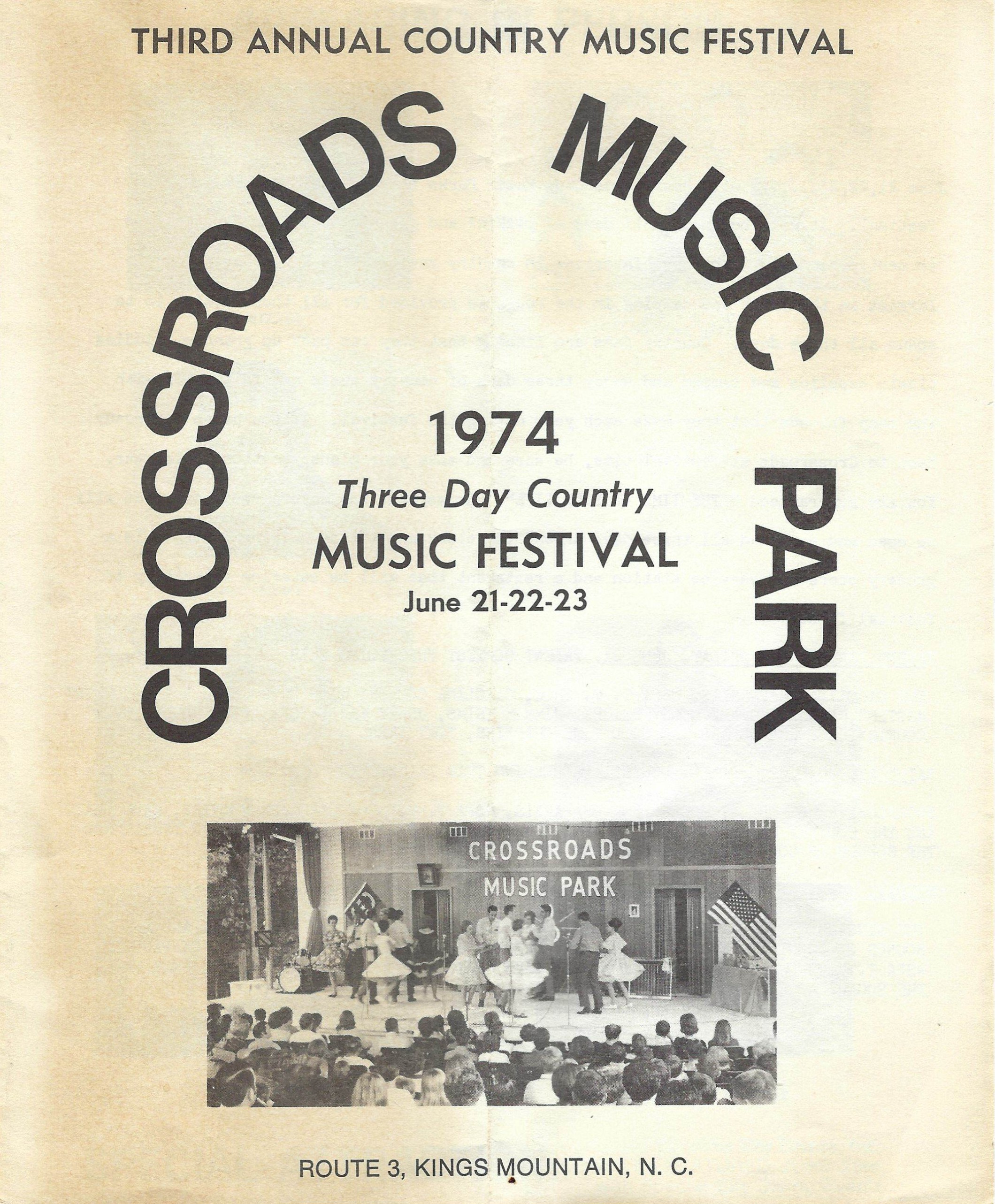A very popular music venue was the Crossroads Music Park located at the SW corner of Oak Grove Road and Stoney Point Road between Shelby and Kings Mountain. It was operated by Tom and Elaine Brooks from 1971 to 1980. Some of the most notable performances included Doc and Eddie Merle Watson, Loretta Lynn, Crystal Gayle, Jeanie C. Riley, Conway Twitty, and Jimmy Dean. See more history and memorabilia here. (Many thanks to Alexis Fowler for gathering these photos.)