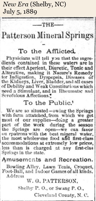 Over time, Patterson built a resort at the springs and it became a popular destination with lots of activities, including football, croquet, lawn tennis, bowling, and other indoor games.