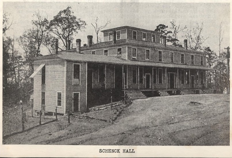 The original school was situated near Schenck’s Cleveland Cotton Mill on Knob Creek. Frances Ramseur Ramsey had a photo of the school–a two-story wood frame building. A second building–the former brick home of Mr. and Mrs. Schenck–served as a dormitory.