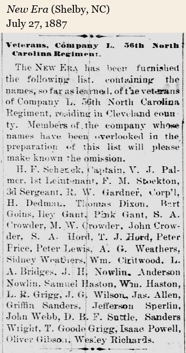 Cleveland County furnished 14 companies and 18 captains during the war. J. D. Lewis conducted extensive research into the various regiments formed from both North and South Carolina. His website, Carolana, provides a table of units from Cleveland County. There are also links to the 1901 book by Walter Clark, Histories of the several regiments and battalions from North Carolina, in the great war 1861-’65, (876 pages). Below is an example of photos throughout the book.
