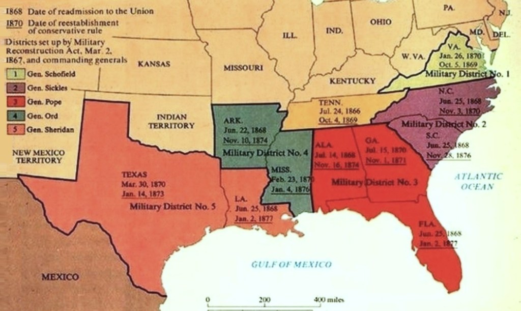 The Reconstruction Acts of 1867 and 1868, were temporary legislative actions with the following provisions: