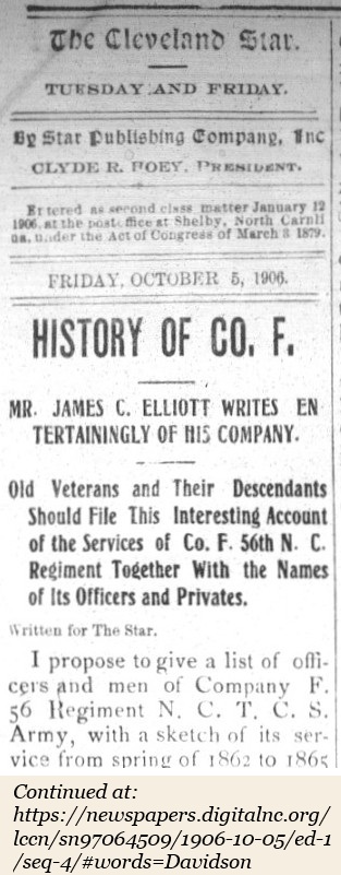 In 1906, James C. Elliott wrote a history of his company in the Confederate Army.
