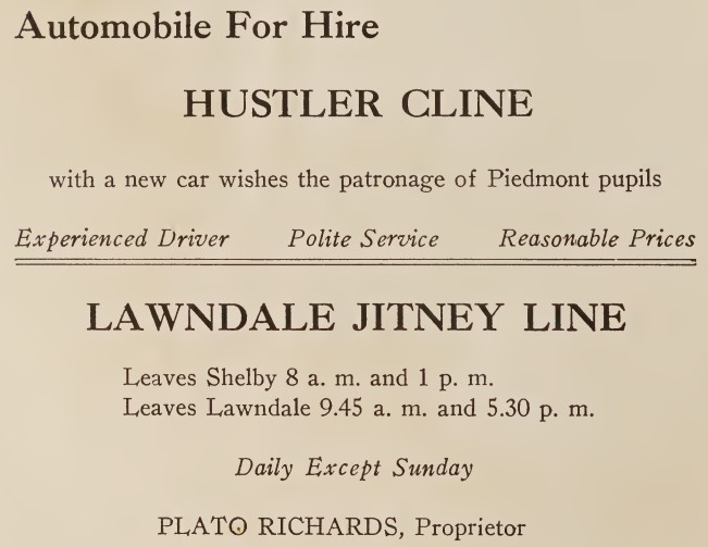 In 1909, the state legislature authorized the county to vote on the issuance of $300,000 in road bonds. The vote failed, but Number 6 Township (in which Shelby is a part) approved the issuance of their own $100,000 in road bonds. In 1911, Number 4 Township (in which Kings Mountain is a part) followed suit with the approval of $25,000 in road bonds. By 1919, every township in the county had sold road bonds and were building and maintaining their own road systems. Maintenance included the use of mules to drag timbers on dirt roads to make them smoother. “Paved roads” were initially just tar and gravel. The city of Shelby did not have streets paved with asphalt until the early 1930s, although sidewalks had been paved between 1907 and 1909.