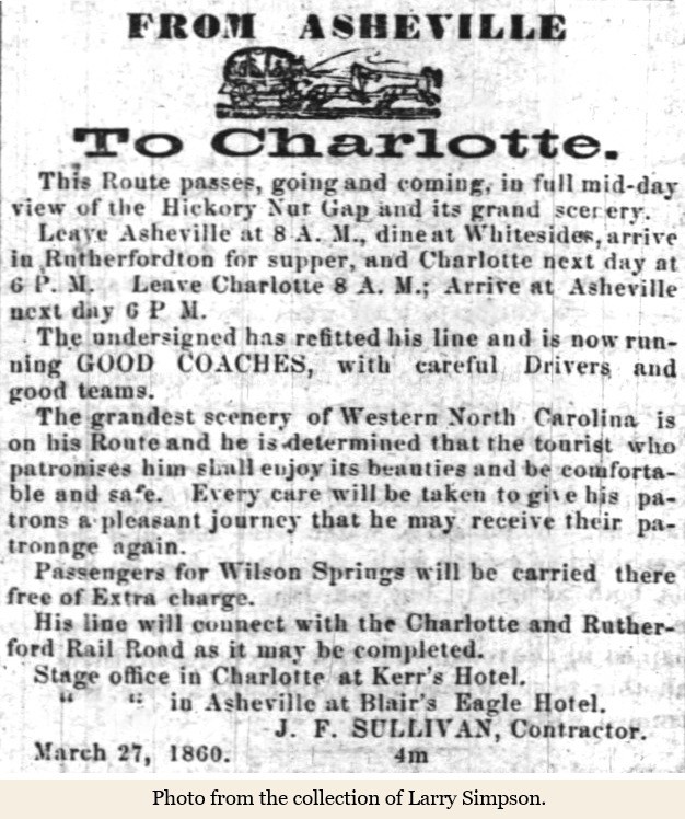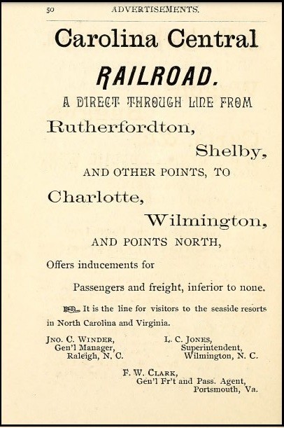 Between 1849 and 1871 in North Carolina, plank roads accounted for 84 chartered roadways, of which some 300 miles were constructed using state and private funds estimated upwards of $800,000. On December 27, 1852, an act to incorporate the Rutherford and Cleveland Plank Road company passed the state legislature. The road would run from Charlotte to Ashville. The initial stock was authorized for $200,000 to $300,000 if necessary. The act stipulated the road must pass through Rutherfordton and Shelby.