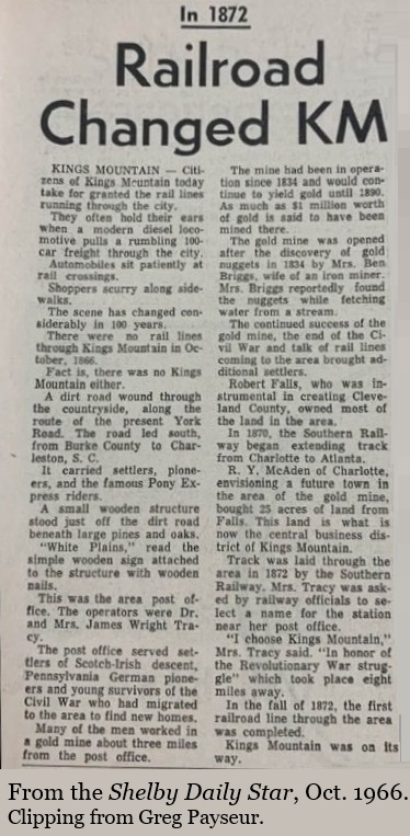 In 1872, Cleveland County received what would become a tremendous factor in the county’s economic development–the Atlanta & Charlotte Air Line reached Kings Mountain and Grover. Two years later, the Carolina Central Railroad completed its line into Shelby. Enhanced rail connections were largely responsible for a surge in cotton production during the 1870s, from 520 bales in 1870 to 6,126 bales by 1880.